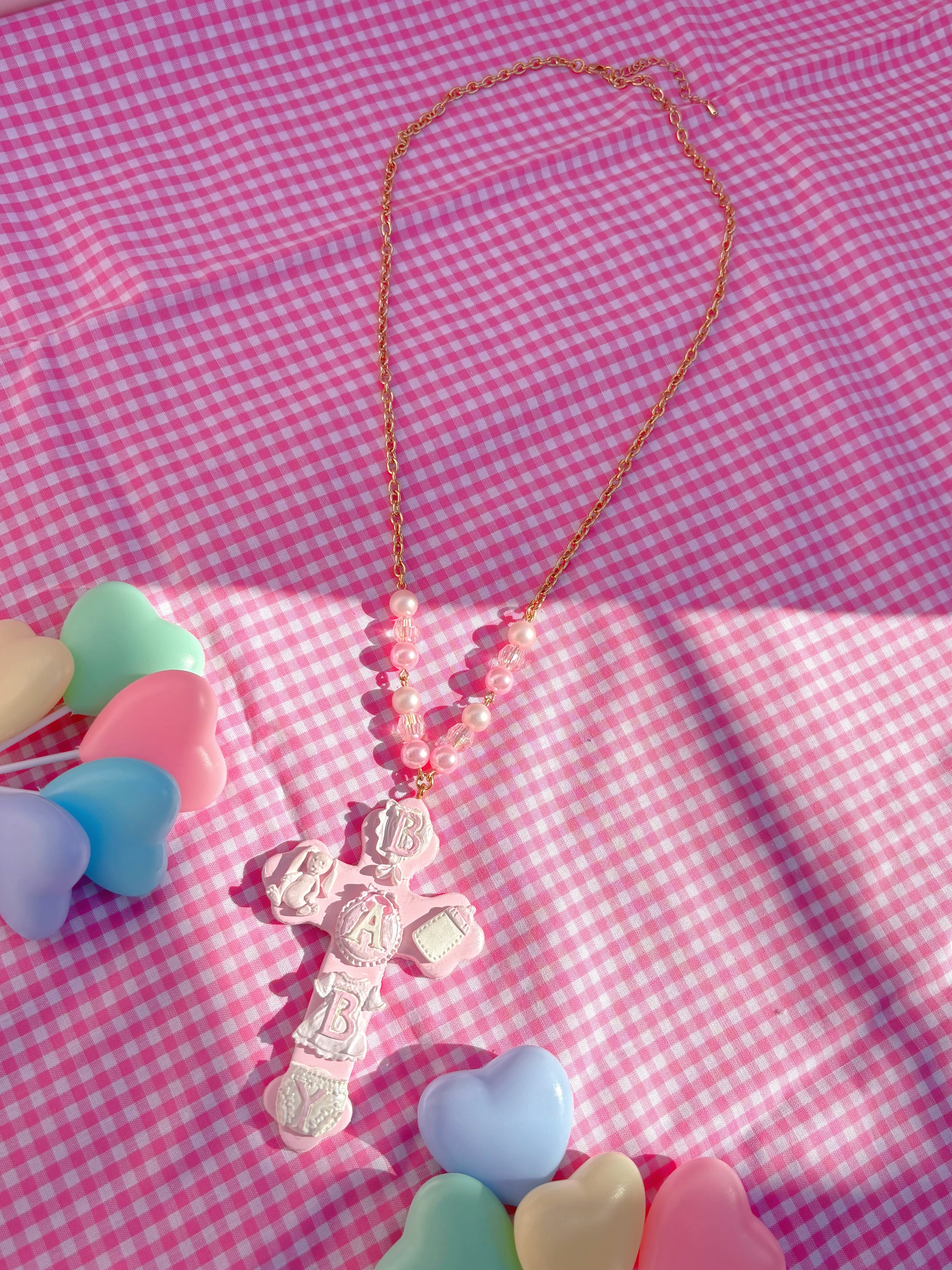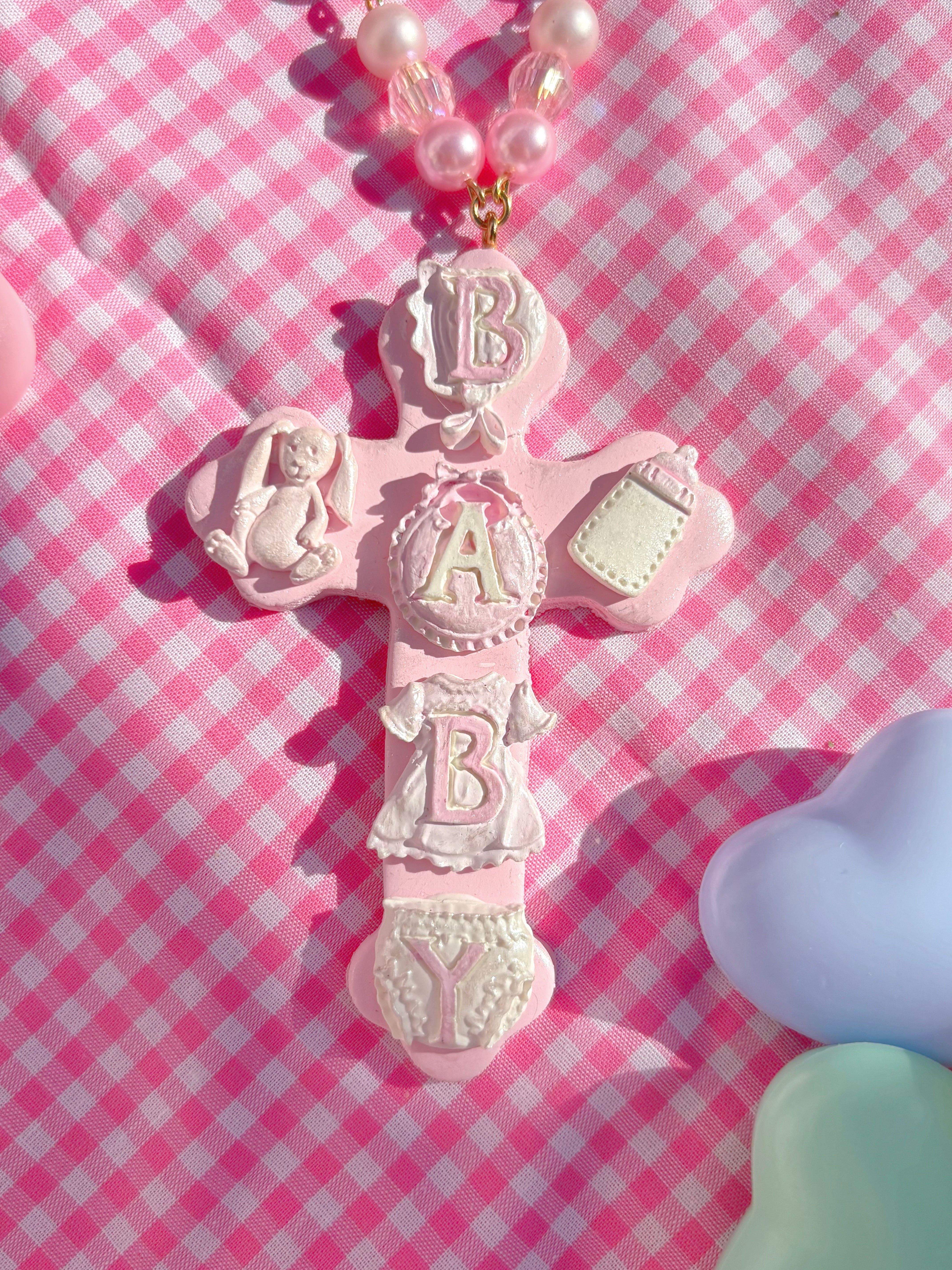 baby cross necklace pink